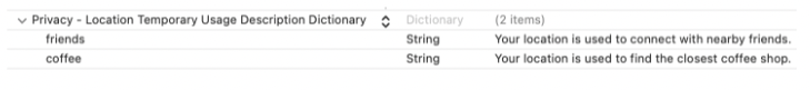 - Privacy - Location Temporary Usage Description Dictionary